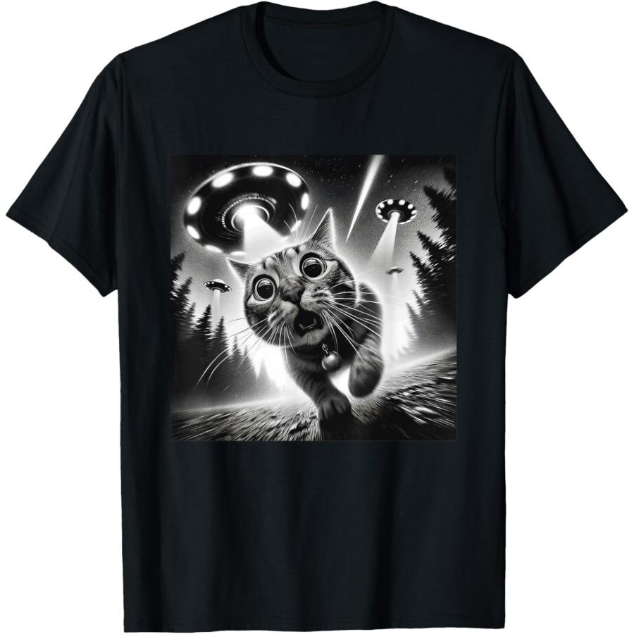 Funny Cat UFO Alien Cat Graphic Men Women T-Shirt, Small
