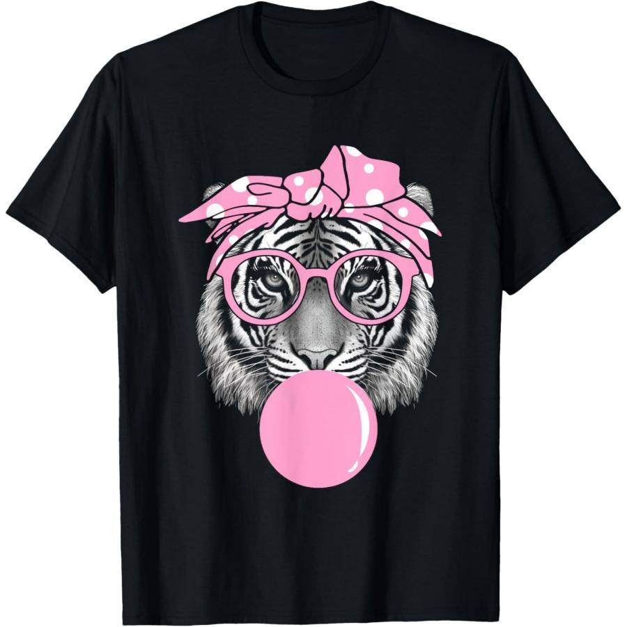 Funny Pink Tiger For Girl Glasses & Pink Bubble Gum T-Shirt