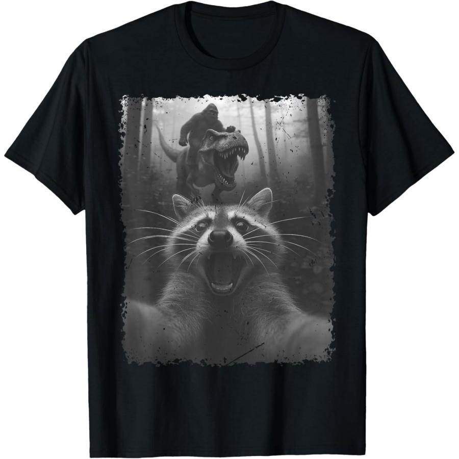 Vtipné mývalí selfie s dinosaurem T-Rexem a Bigfoote tričko