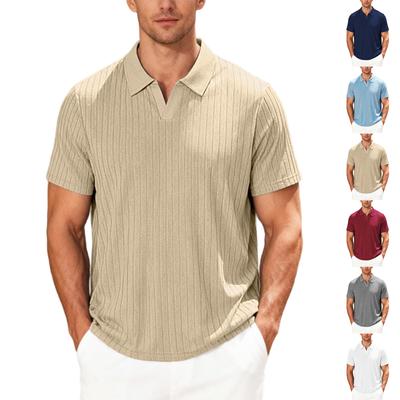 Pánská jednobarevná klasická košile s krátkým rukávem a klopami, sportovně-ležérní top