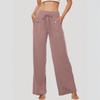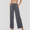 Dámské jednobarevné rovné kalhoty s vysokým pasem, Ležérní kalhoty, Volné sportovní kalhoty na jógu