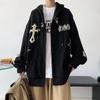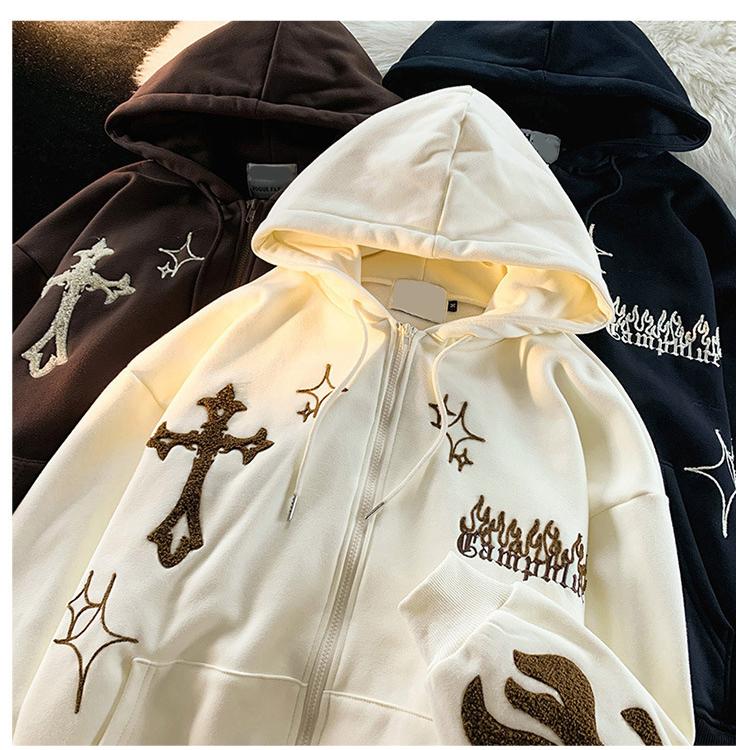 American Retro Oversize Hoodie Sweatshirt Women's Casual Outerwear Autumn Winter Coat Fun Print Couple's Loose Fit Cardigan