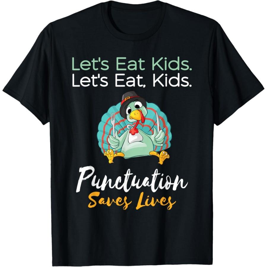 Grateful Gatherings Kids Punctuation Funny Turkey Thanksgiving Teacher T-Shirt
