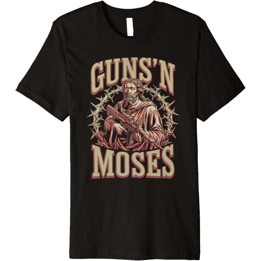 Guns N Moses, Religious Christian Bible Moses Gun Lover Premium T-Shirt