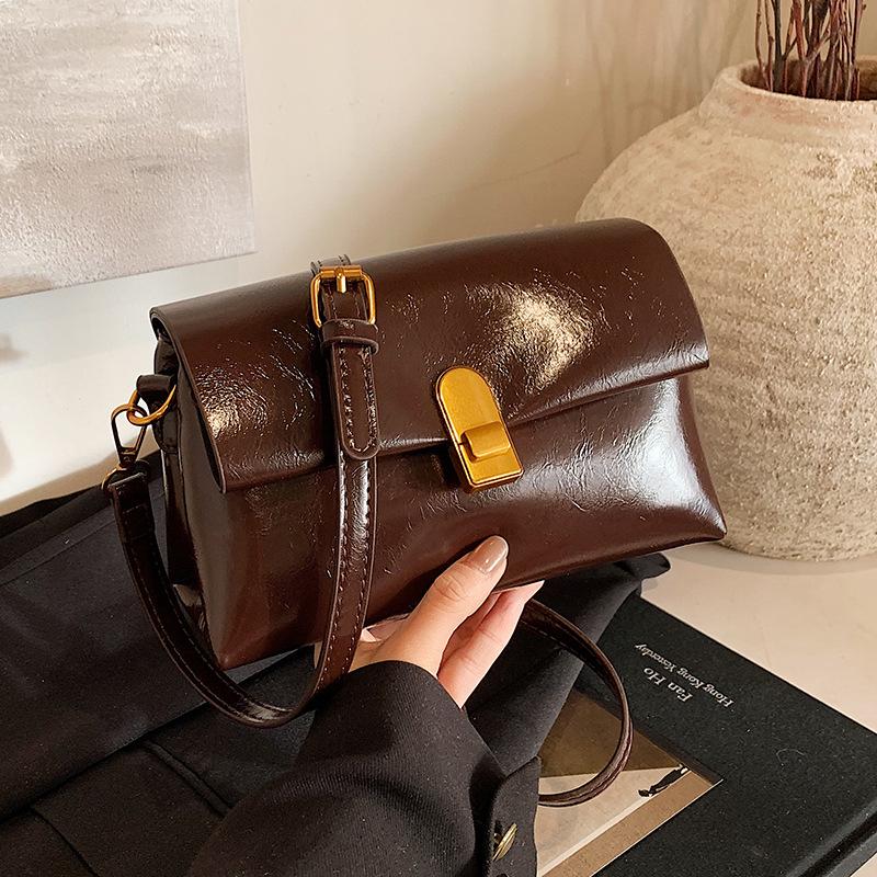 Autumn and winter retro women's work small bag versatile high-end oil wax leather fashion shoulder messenger bag
