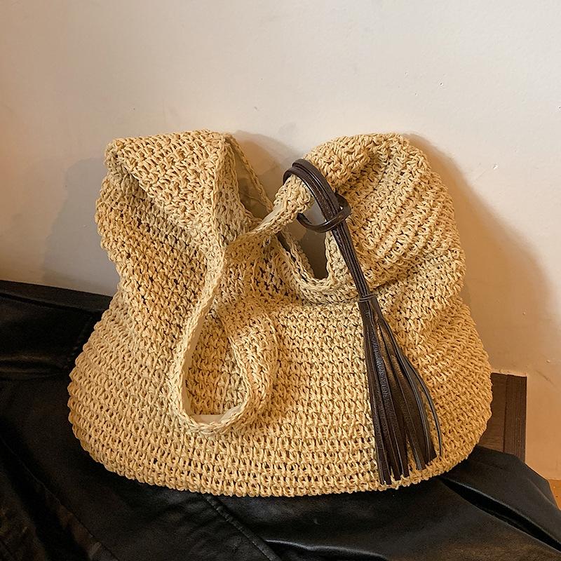 Fashion niche design large-capacity straw beach bag simple leisure literary sense lazy shoulder women's bag