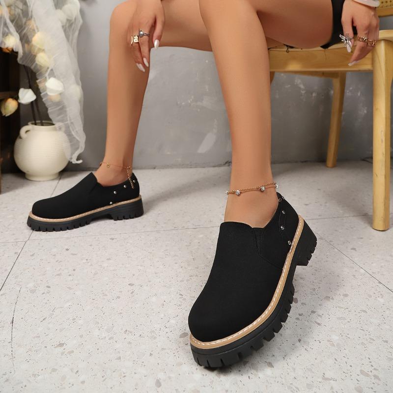 Dámské mokasíny široké šířky na robustním podpatku - Nazouvací ležérní baleríny s kulatou špičkou na podzim/zimu, Platformové pohodlné boty