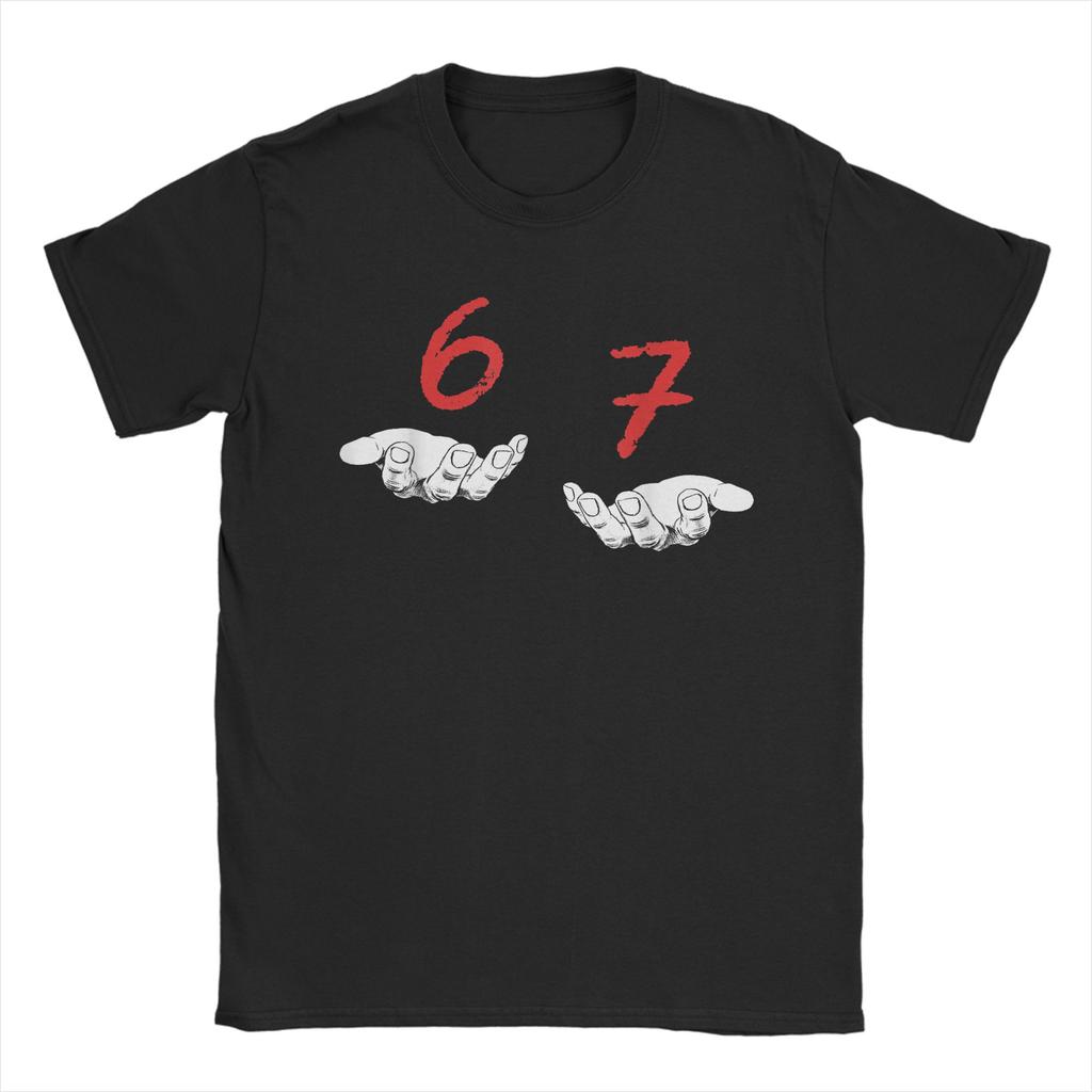 Leisure Six Seven 6 7 Meme Vtipné Ruce Tričko Pánské O Krk Bavlněná Trička Slang Gen-Alpha Krátký Rukáv Potisk zboží