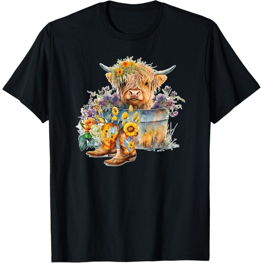 Scottish Highland Cow Cattle Farm Hairy Cowgirl Flower Woman T-Shirt
