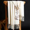 Lamaxpa 2018 Winter Warm Solid Scarf For Women/Lady Soft Wool Pashmina Shawls Flower Embroidery Cashmere Female Wraps Capes