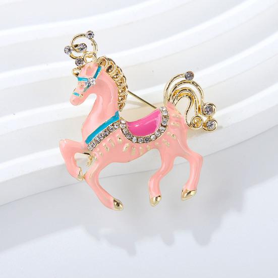 Crafted from high-quality zinc alloy, this brooch offers exceptional durability and corrosion resistance, ensuring long-lasting wear without deformation. Its exquisite design features a retro carousel horse adorned with brilliant rhinestones on the saddle and mane, adding a luxurious sparkling that catches the light beautifully.