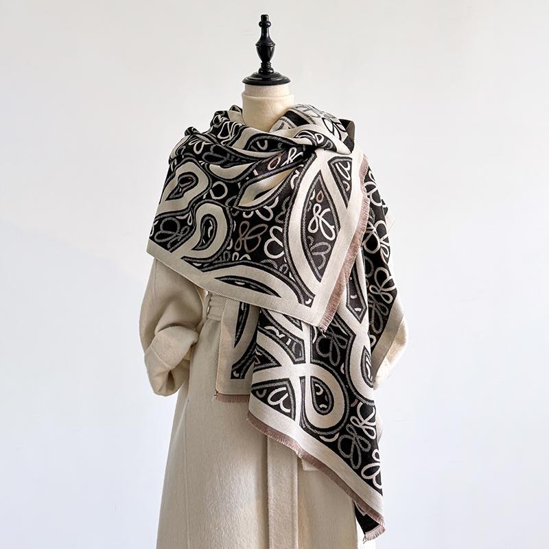 Elegant Star Print Scarf Imitation Cashmere Soft Warm Versatile Shawl Coldproof Windproof Blanket Scarf For Autumn Winter