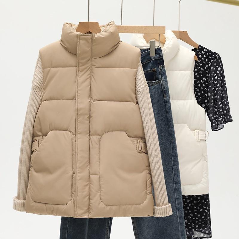 Down cotton vest women's short autumn and winter new Korean version vest waist strap thickened sleeveless cotton vest