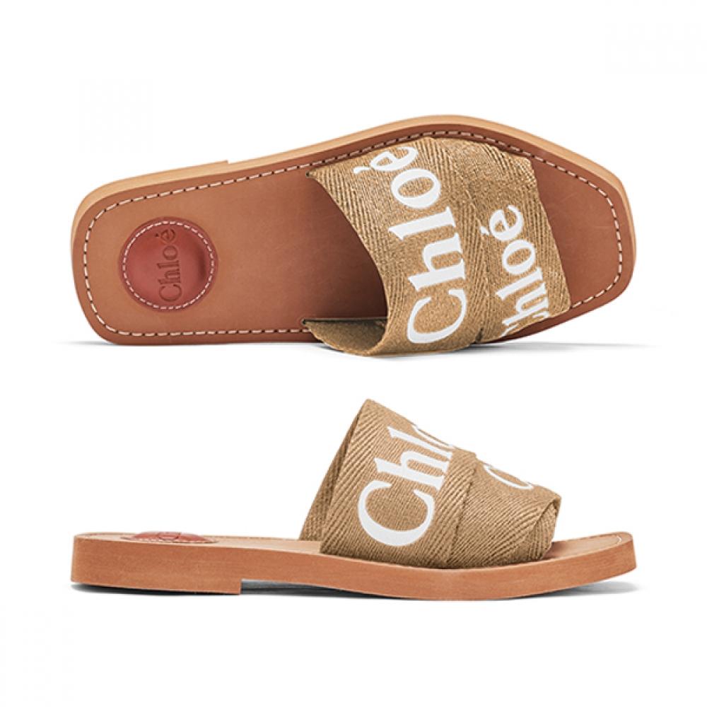 Chloe Chc23u188ef 24j Woody Logo Flat Mule Slippers