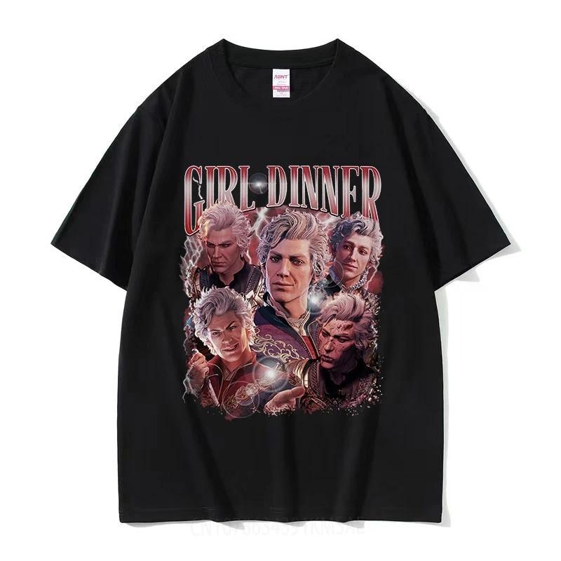 Vintage Astarion Girl Dinner Baldurs Gate Graphic T Shirt Men's Cosplay High Quality Fashion T-shirts Harajuku Oversized T-Shirt