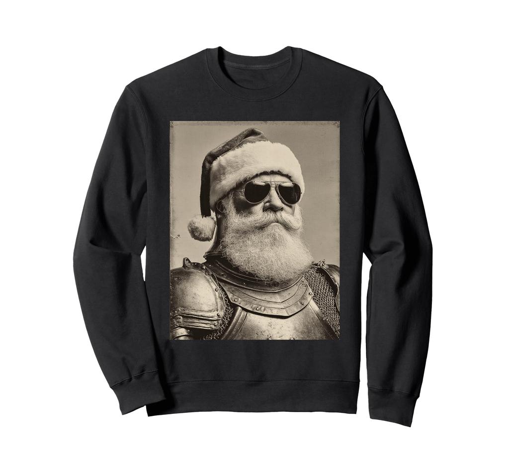 Festive Medieval Knight Santa Claus Sunglasses Retro Christmas Sweatshirt