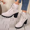 Women's Wide Width Round Toe Ankle Boots - Lace-Up High Heel Martin Boots for Fall/Winter, Fashion Casual Boots