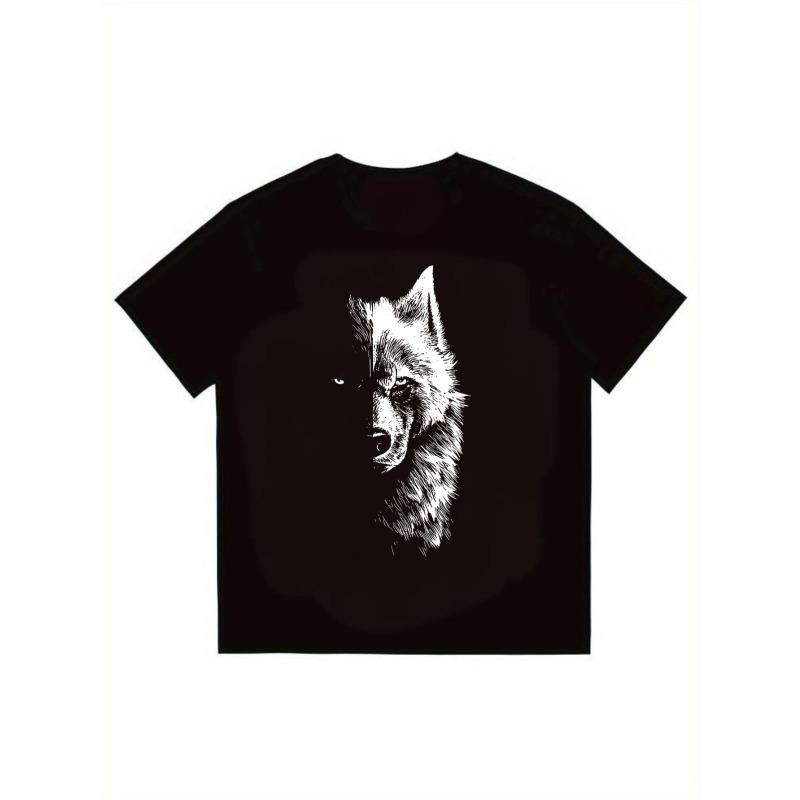 Black T Shirt Wolf Graphic Print Casual Streetwear Top for Men and Women Unisex Fashion Tee Daily Wear Outfit Essentials