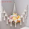 Triangular Toy Hammock Handwoven Cotton Rope Wall Storage for Stuffed Animals Plush Toys and Decor Macrame Toy Net With Fringe