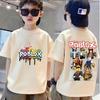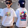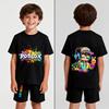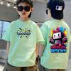 Boys' game style printed black short sleeved T-shirt with fashionable and colorful patterns, children's loose summer top, children's clothing
