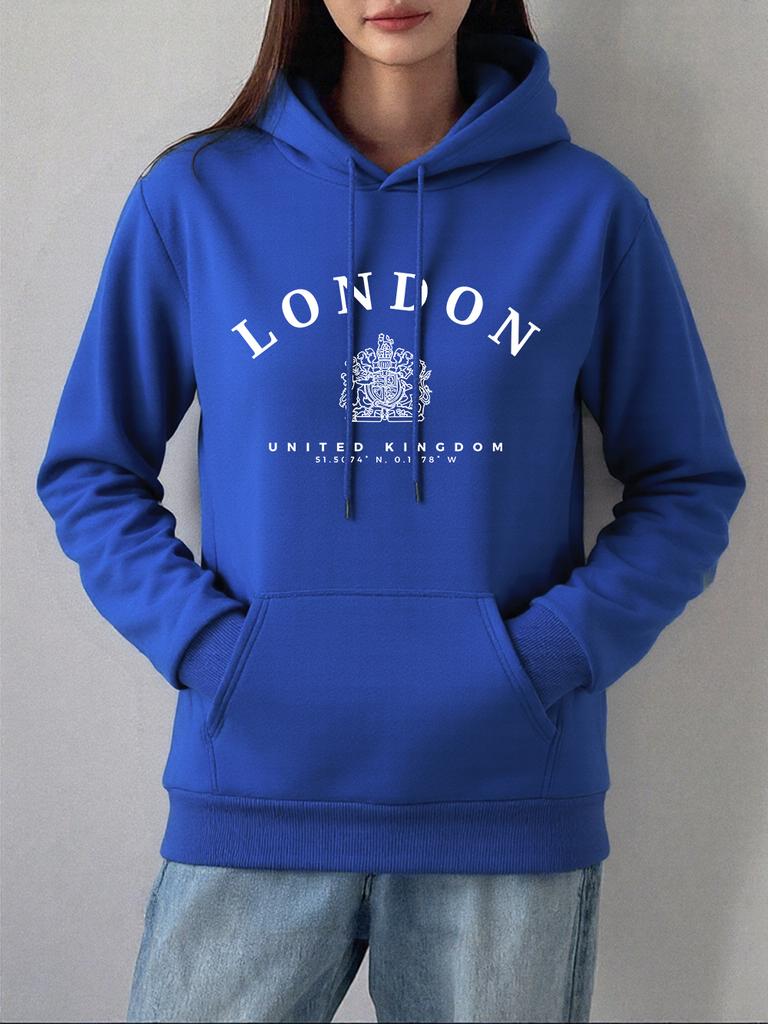 London Uk Royal Badge Prints Hoodies Women Comfortable Loose Sweatshirt Winter Fleece Warm Pullovers Casual Pocket Woman Clothes