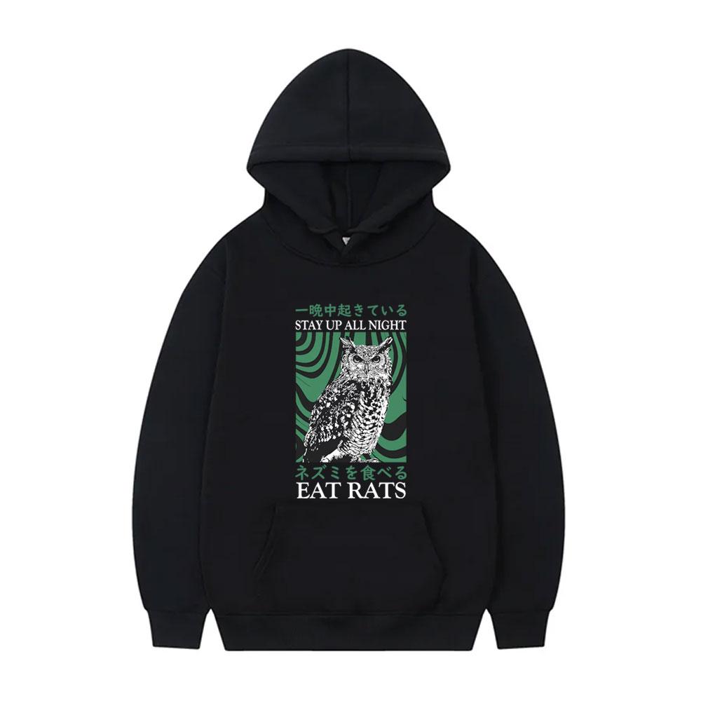 Stay Up All Night Eat Rats Hoodie Funny Meme Japanese Owl Graphic Pullover Sweatshirt Male Fashion Casual Fleece Cotton Hoodies