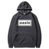 The hooded sweatshirt with the logo of the rock band "Oasis", suitable for both men and women, featuring a trendy hip-hop style.