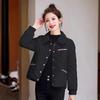 Lapel Solid Color Button Cardigan Long Sleeve Beaded Women's Coat Cotton Autumn Winter Fashionable Casual Top