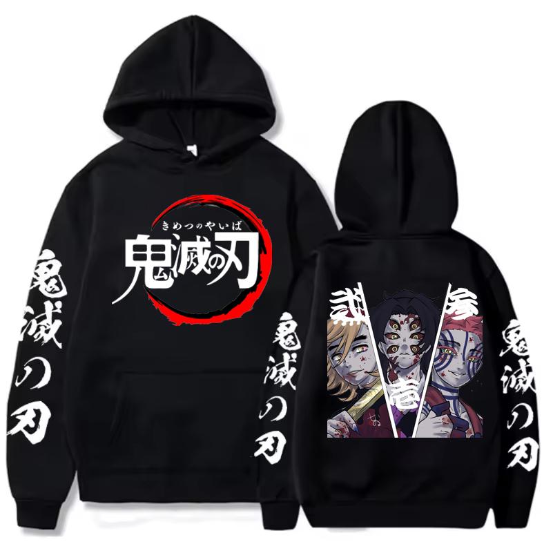 Anime Demon Slayer Kokushibo Douma Retro Cartoon Men Hoodies Casual Harajuku Unisex Patchwork Winter Hooded Sweatshirts