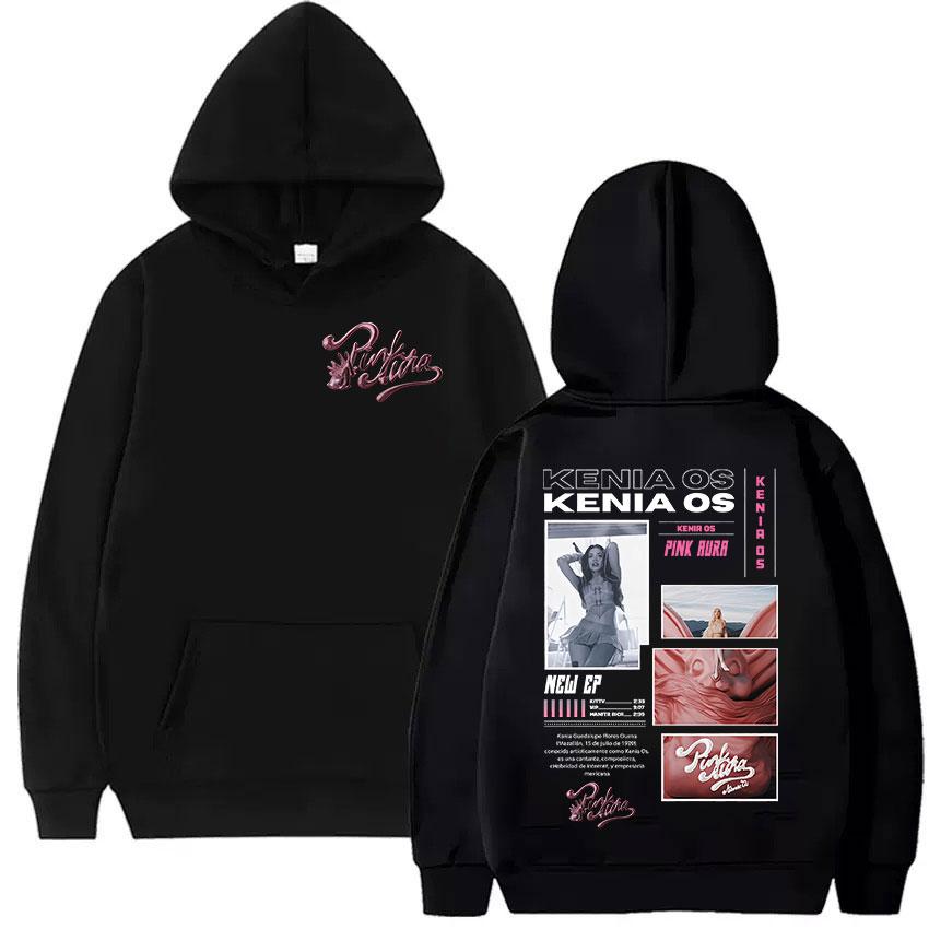 Singer Kenia Os Pink Aura Album 2025 Graphic Hoodie Men Women Vintage Aesthetic Sweatshirts Fashion Oversized Hoodies Streetwear