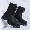 NEW Motorcycle Women's buckle Boots Winter Leather Shoes Black Botas Wedges Female Lace Up Platforms Women White Botas Mujer