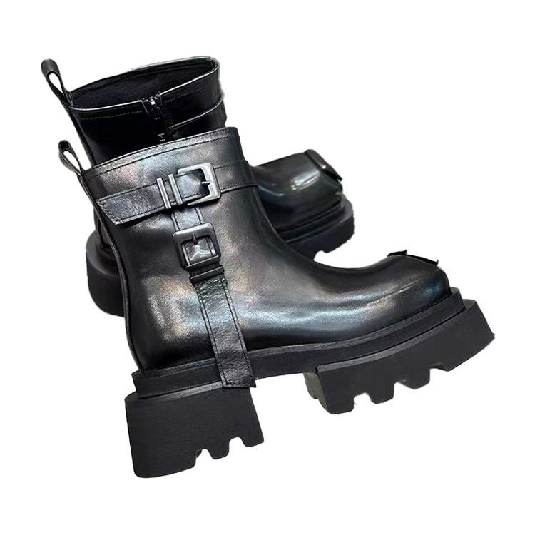 Men's and Women's Same Spring Short Platform Niche Tooling Locomotive Leather Platform Heels Boots