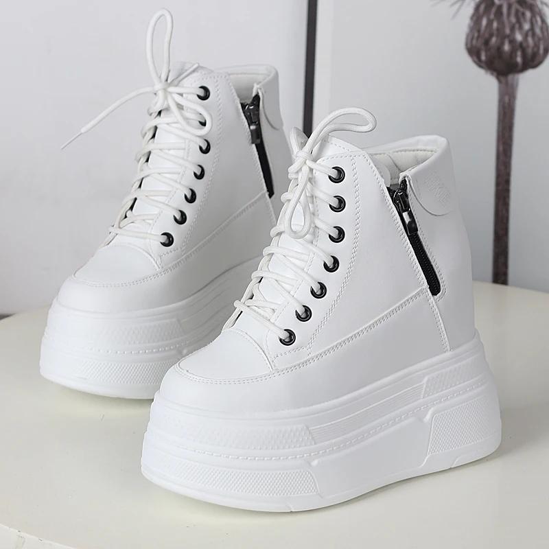 13CM Microfiber Genuine Leather Vulcanize Summer High Comfy Spring Autumn Platform Women Chunky Sneaker Loafer Shoes