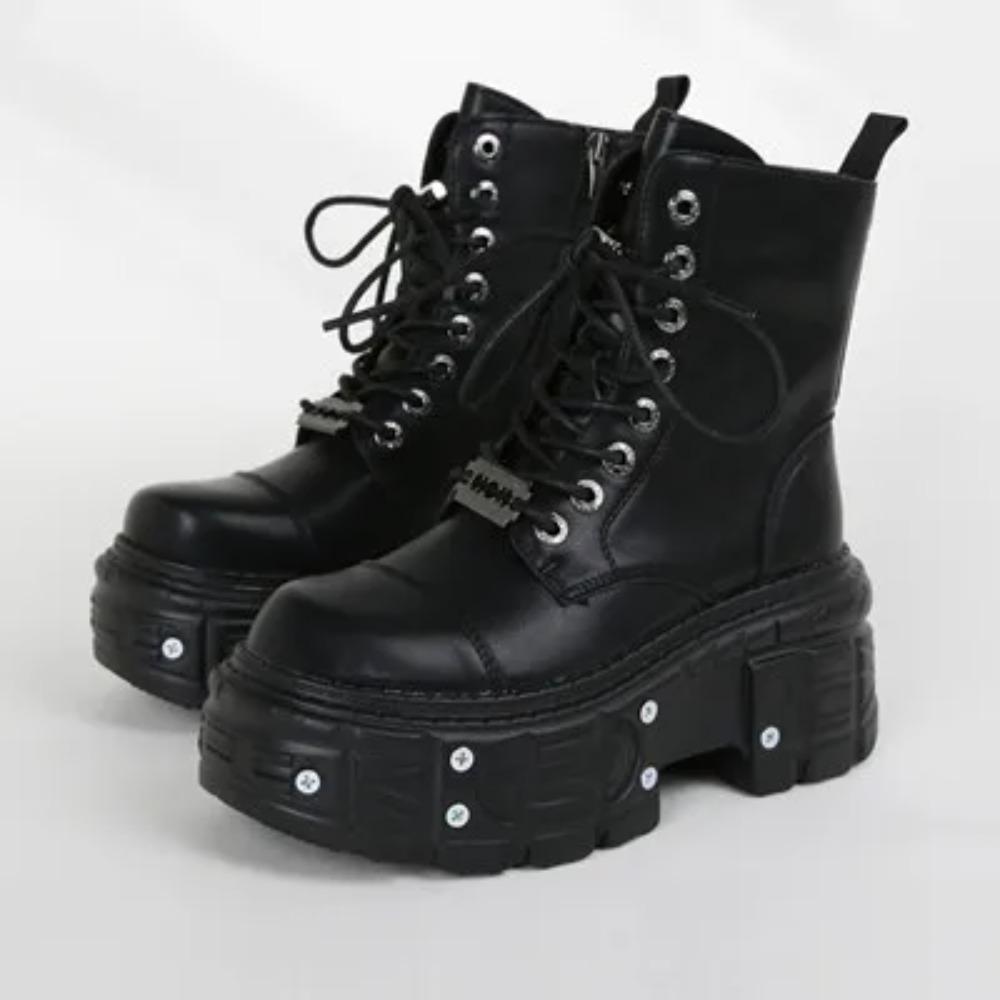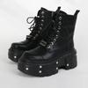 Women Ankle Boots Big Size 36-45 Man Shoes Lace-Up Round Toe Thick Bottom Shoes Rivet Platform Flat Casual Botas