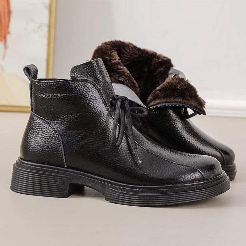 Genuine Leather Winter Shoes Women Snow Boots Warm Plush for Cold Winter Soft Ladies Ankle Boots Black Big Size 41 DX650