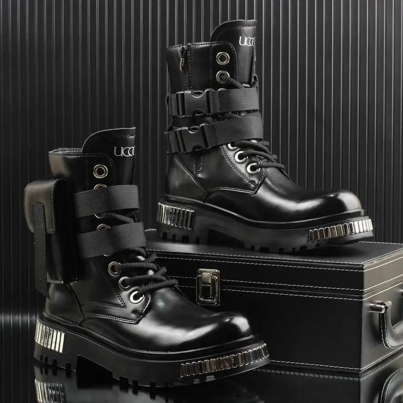 Pánské vysoké britské střední motocyklové ležérní tenisky na platformě se silnou podrážkou Chelsea boots