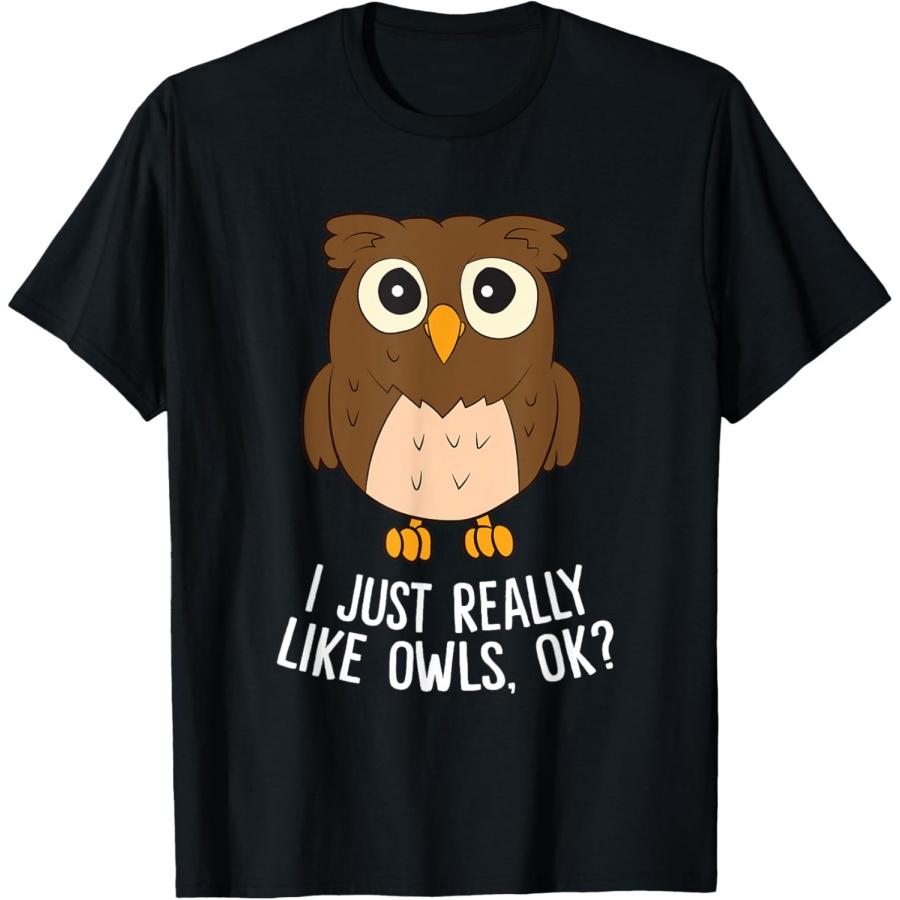Cute Bird Tees Unisex-Adults Owl Lovers Funny Owl Graphic T-Shirt Black Small