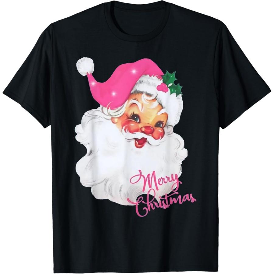 Funny Vintage Pink Santa Claus Pink Christmas Design T-Shirt