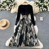 French Style Velour Luxury Dress V Neck Long Sleeve Sashes Splice Jacquard Autumn Women Floral Print Party Maxi Dress