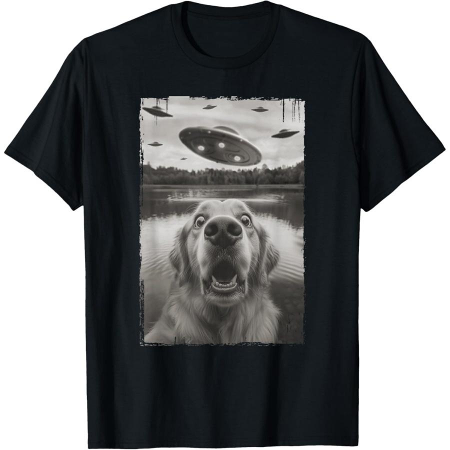 Golden Retriever Selfie with UFO - Funny Golden Retriever T-Shirt