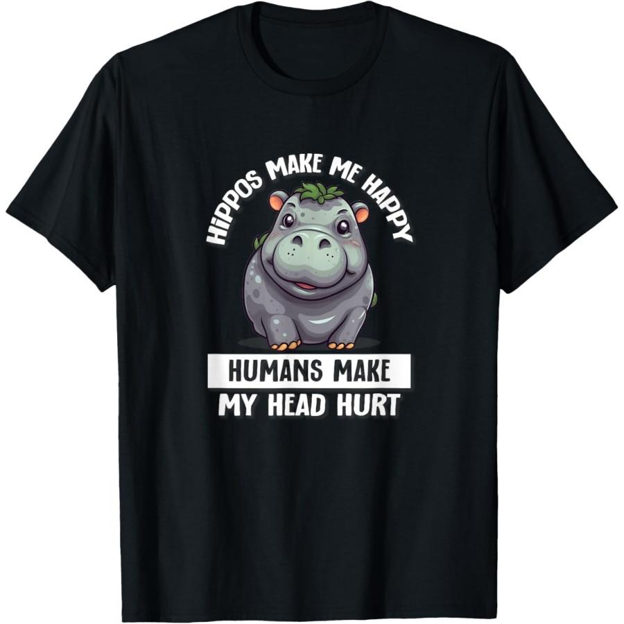 Hippo Gifts Shirts & Hoodies Hippo T-Shirt Women's Black Cartoon Hippo T-Shirt Casual T-Shirt S