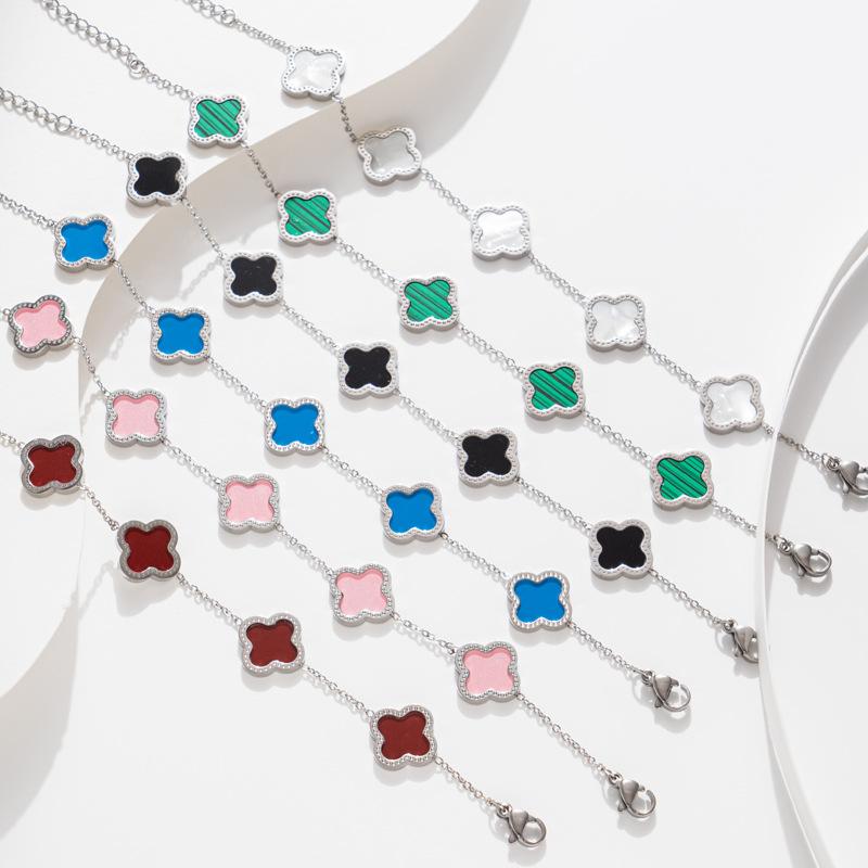 Non-fading Titanium Steel Four-leaf Clover Mother-of-pearl Bracelet for Women Stylish Simple and Luxurious Four-leaf Clover Bangle