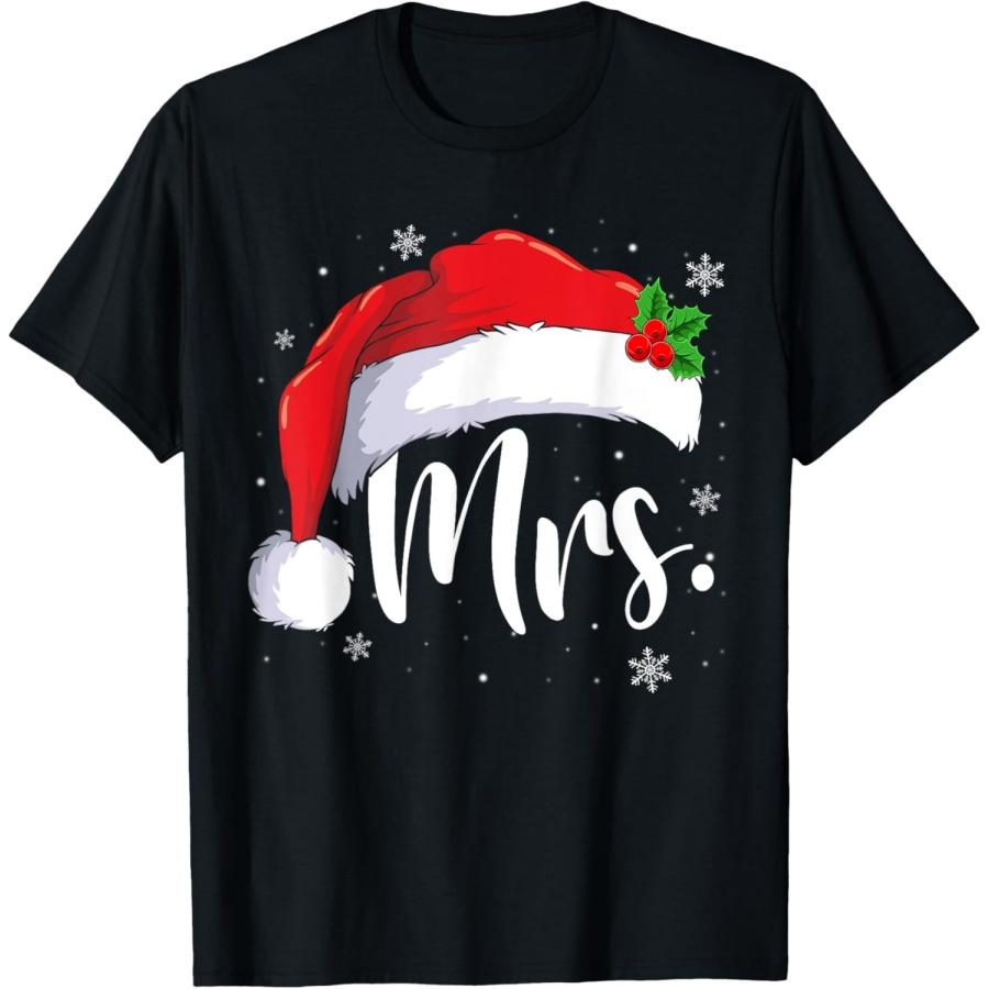 Mr and Mrs Claus Couples Matching Christmas Pajamas Santa T-Shirt(1)