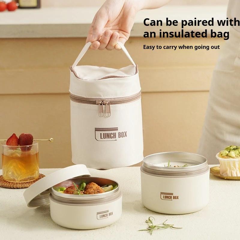 304 stainless steel insulated lunch box set, with storage bag, folding handle, leak proof seal, suitable for offices and schools