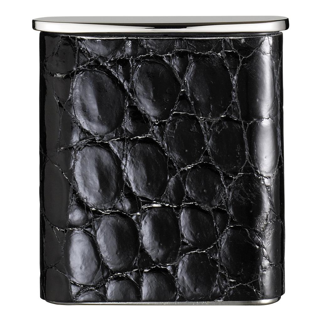 Tsubota Pearl Portable Ashtray, Tasca, Handmade with Walnut Leather, Genuine Crocodile Leather, Made in Japan, Black, 1-89933-10