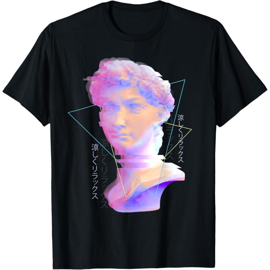 Vaporwave Davidova busta Glitch Art Kanji Retro 80. léta 90. léta Tričko