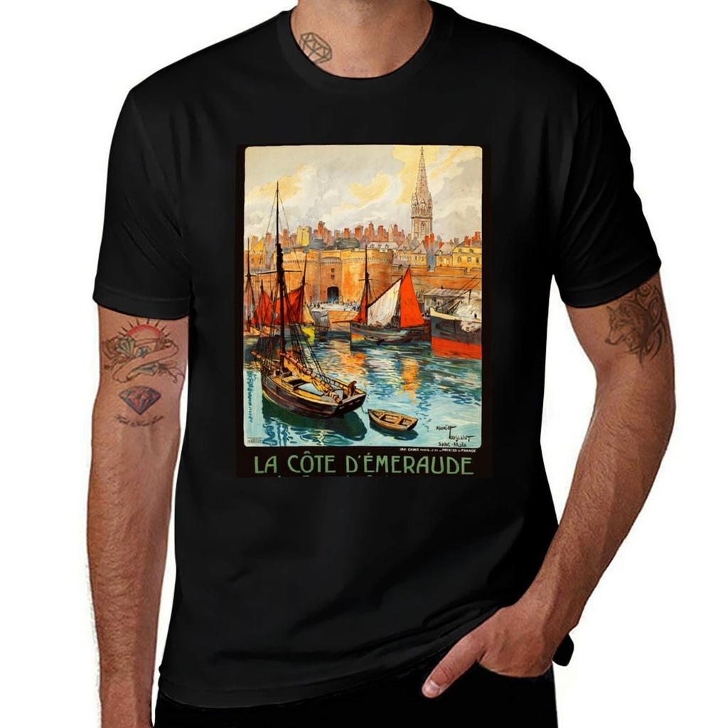 FRANCE Le Port de Saint Malo 1930s Vintage travel Poster T-Shirt graphic shirts plus size tops fitted t shirts for men