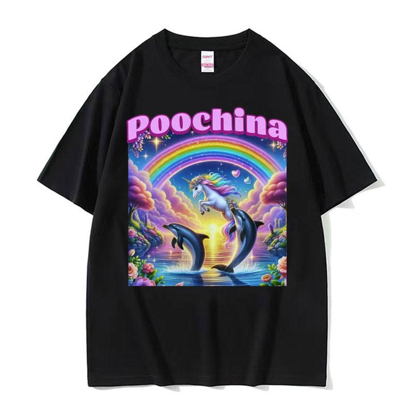 Poochina Brain Rot Ironic Funny Meme Tee Shirt for Men Harajuku Hip Hop Streetwear T-shirt Unisex Oversized Cotton T-shirts Tops