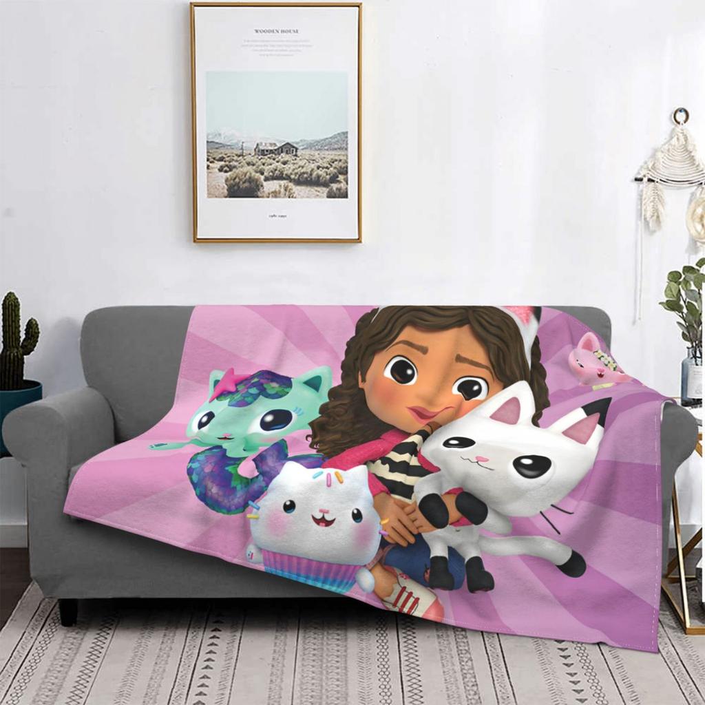 Gabbys Dollhouse Cartoon Blanket Velvet Summer Portable Super Warm Throw Blanket for Bedding Travel Bedspreads