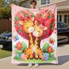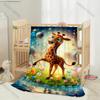 [2D Flat] 1pc Soft & Cozy Flannel Blanket Cartoon Style Giraffe Print Ideal for Gift Giving